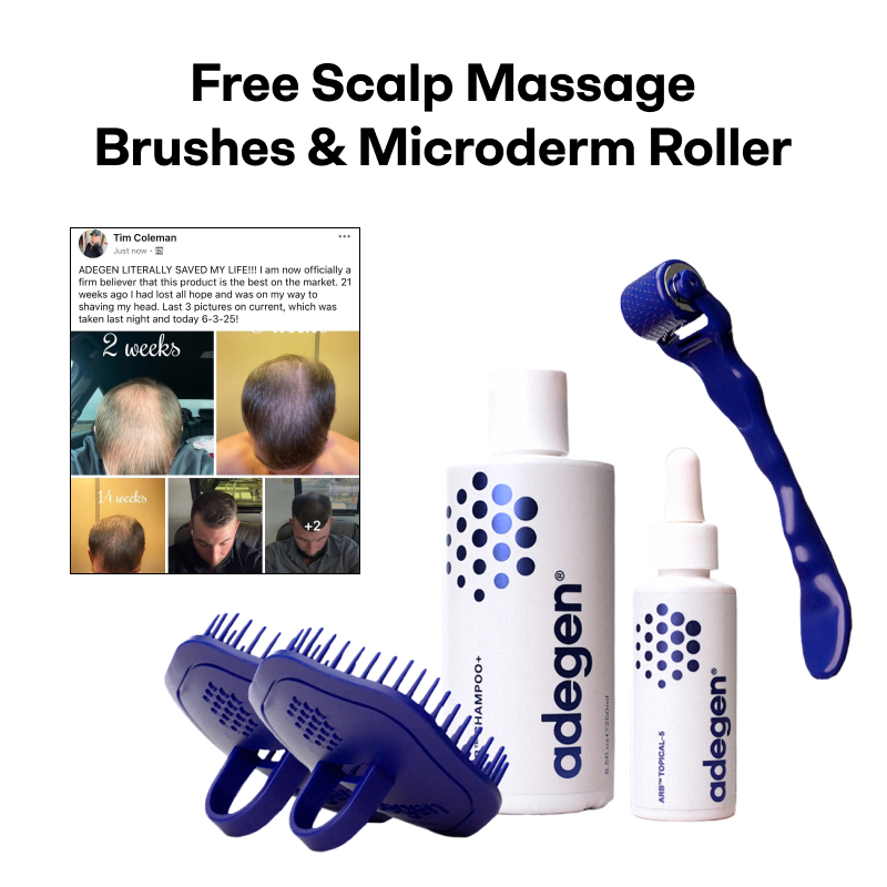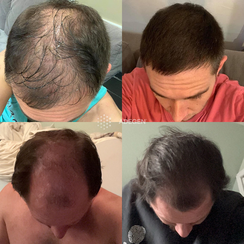 Adegen works everywhere at once. Temples filling back in. Crown spot closing up. Hairline actually moving forward. The whole top of your head gets fixed, not just the easy parts.